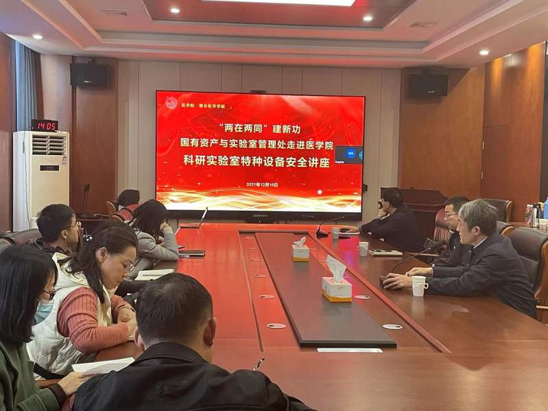 为进一步贯彻和落实学校实验室安全管理的要求,树立师生实验室安全红线意识,提高个人防护能力,12月10日下午,国有资产与实验室管理处和我院特邀南京市市场监督局特设处赵新荣处长莅临我院作实验室特种设备安全知识专题讲座。张军书记,部分实验室主任、安全员,各个课题组研究生代表参加了讲座。讲座由燕珂副书记、副院长主持。