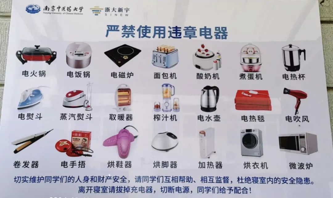 根据宿舍安全管理规定,杜绝使用违规电器。违规电器是宿舍火灾的主要“元凶”之一,比如热得快、电饭锅、卷发棒、电暖器等大功率电器,在宿舍这种人员密集的场所使用,很容易使本来设计负荷小的线路和设备承载超大负荷,进而引起线路或设备着火。