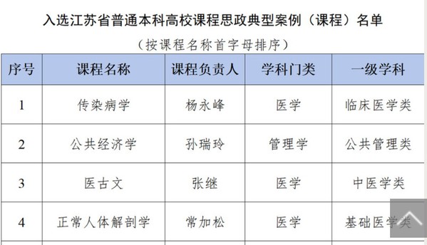 近日,江苏普通本科高校课程思政典型案例入选名单公布,我院《正常人体解剖学》入选江苏普通本科高校课程思政典型案例(课程),这是该课程在获得省级及国家级线上一流课程后取得的又一新的成绩。