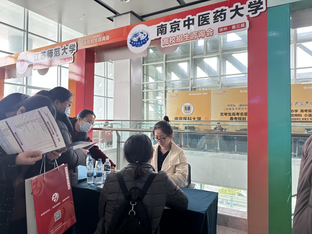 在淮海科技城会展中心举办的徐州市高校招生会上,我校展位吸引了众多考生及家长驻足咨询。招生团队通过发放宣传资料、一对一答疑等方式,全方位展示了我校的办学实力与育人成果,进一步提升了我校在徐州地区的知名度和影响力。