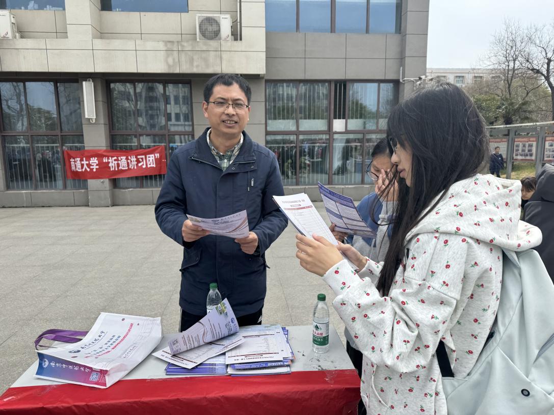 为进一步提升本科生招生宣传实效,拓展优质生源渠道,深化与中学的交流合作,充分展示我校办学特色、学科优势及招生亮点,3月29日至30日,我院党委副书记、副院长郁祥,学工办朱晓晨老师一行赴徐州开展招生宣传工作,走访了郑集中学并参加“徐州市2025年高校招生会”。