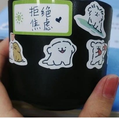 给普通的杯子换上新装,用贴纸展示个性。同学们纷纷选择自己喜欢的图案和风格,通过巧手贴饰,让原本平凡的杯子变得独一无二,为生活增添一份小确幸