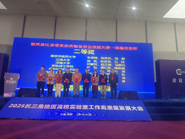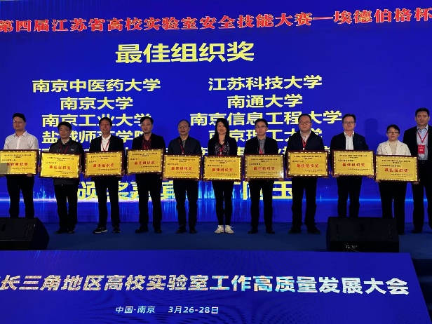 3月22日,由江苏省高等教育学会高校实验室研究委员会主办,常州大学承办的第四届“江苏省高校实验室安全技能大赛”在常州大学举办,全省共有66所高校参赛,经过理论考核和实操考核两阶段竞技,共决出特等奖1个,一等奖8个,二等奖16个,三等奖41个。我院实验教学中心李祺瑞、赵欢欢、陈颖三位老师代表我校参赛获本科组二等奖,我校获大赛最佳组织奖。