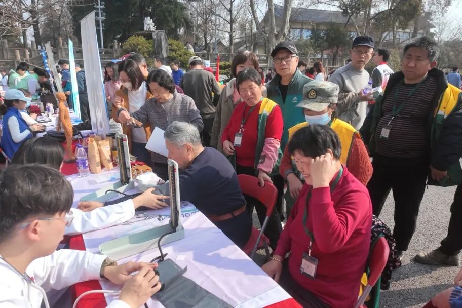 活动当天,许多闻讯赶来的群众早早来到现场排队等候,有序体验各项志愿服务。“杏林春暖”服务队的志愿者们始终面带微笑,秉持着认真负责的态度开展志愿服务。他们热情地为居民们测量血压,耐心询问居民们的健康状况,为居民们提供一些强身健体的建议。