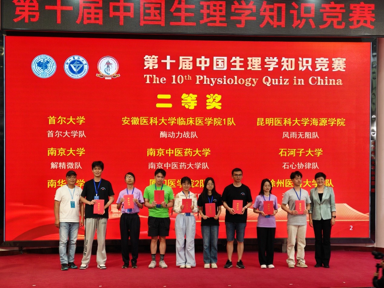 2025年5月17-18日,第十届全国英文生理学知识竞赛在徐州医科大学圆满落幕。我院参赛队凭借扎实的专业功底与出色的英文表达能力,从全国众多高校中脱颖而出,最终荣获国赛二等奖,充分展现了我校学子在学术竞技领域的卓越风采。