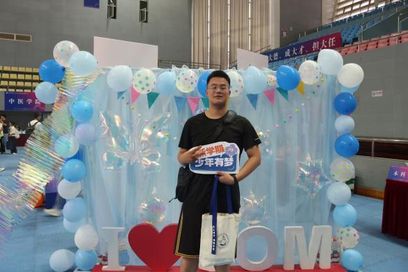 步入体育馆内场,属于学院的清新淡蓝色映入眼帘,为炎炎夏日注入一抹清凉。这里不仅是报到的“一站式枢纽”,更是新生与学院的“初遇打卡点”。身着志愿服的学长学姐们穿梭其间,耐心引导新生完成注册、领取材料,用细致服务化解初来乍到的陌生感。在特制的日历墙前,新生们以彩色手印与彼此击掌,将名字与梦想定格在2025年的开学季。炫彩双螺旋前,此起彼伏的相机快门声留下了一张张青涩的笑脸,原来是他们的“医学DNA”动了。