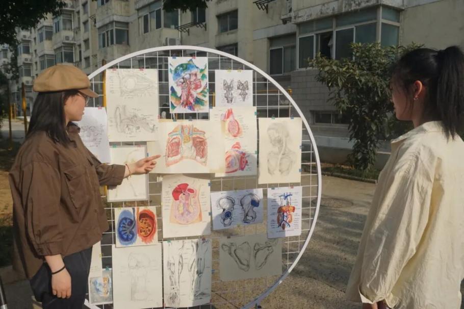现场展出十余幅同学们亲手绘制的解剖画作品,这些作品以严谨笔触精准勾勒人体结构,同时巧妙融入传统艺术手法,从多角度清晰呈现经络走向。不仅大力弘扬了解剖文化,让更多学生得以深入了解人体奥秘,打破对解剖学的神秘感与畏惧心理,还有效激发了学生对解剖学的学习兴趣,为医学教育注入新的活力。使医学与美学在此完美交融,为校园文化增添了一抹亮丽色彩,引领师生领略医学之美、科学之魅。